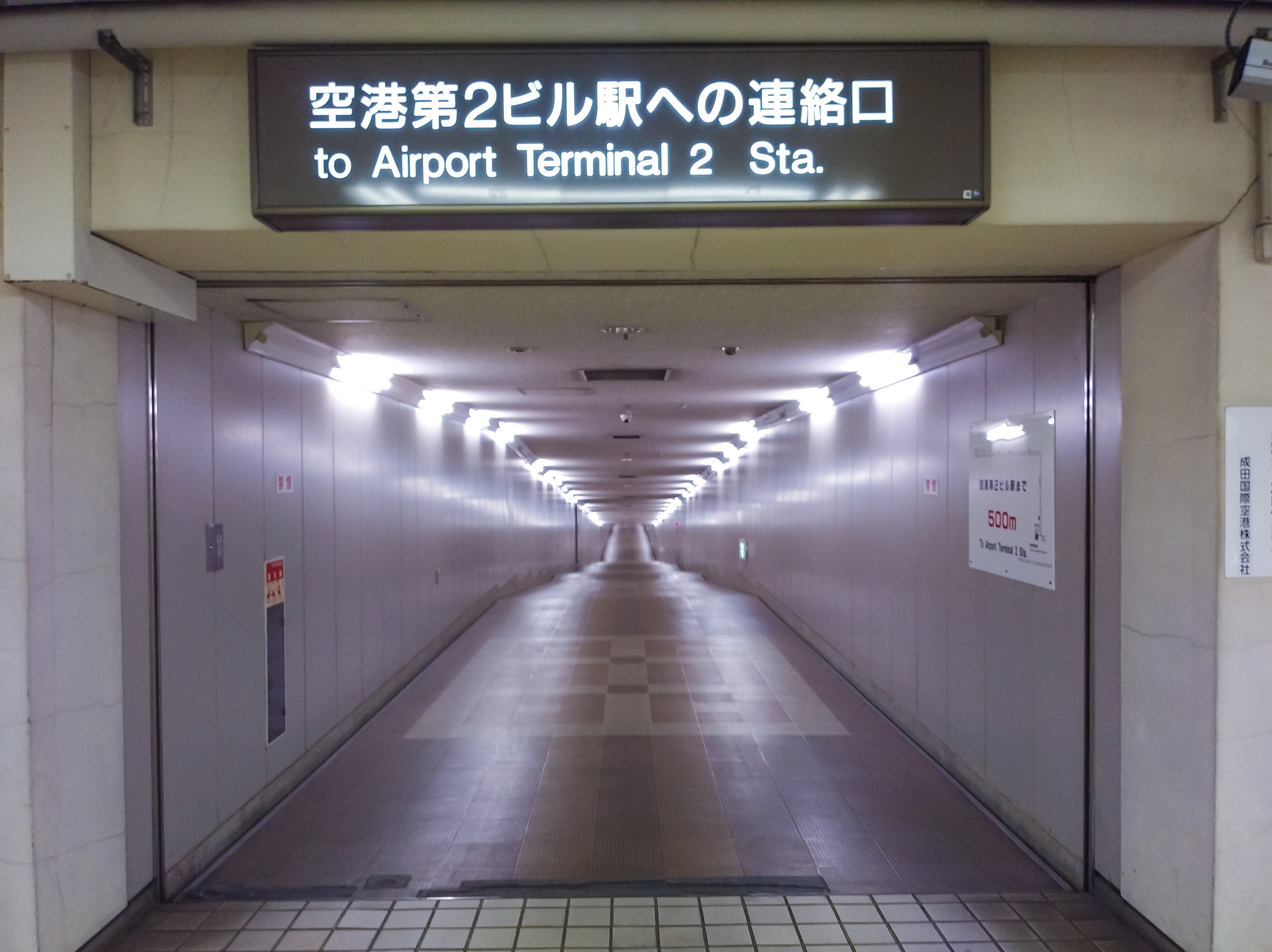 空港第2ビルへ向かうトンネル - 東成田駅(千葉県成田市古込)