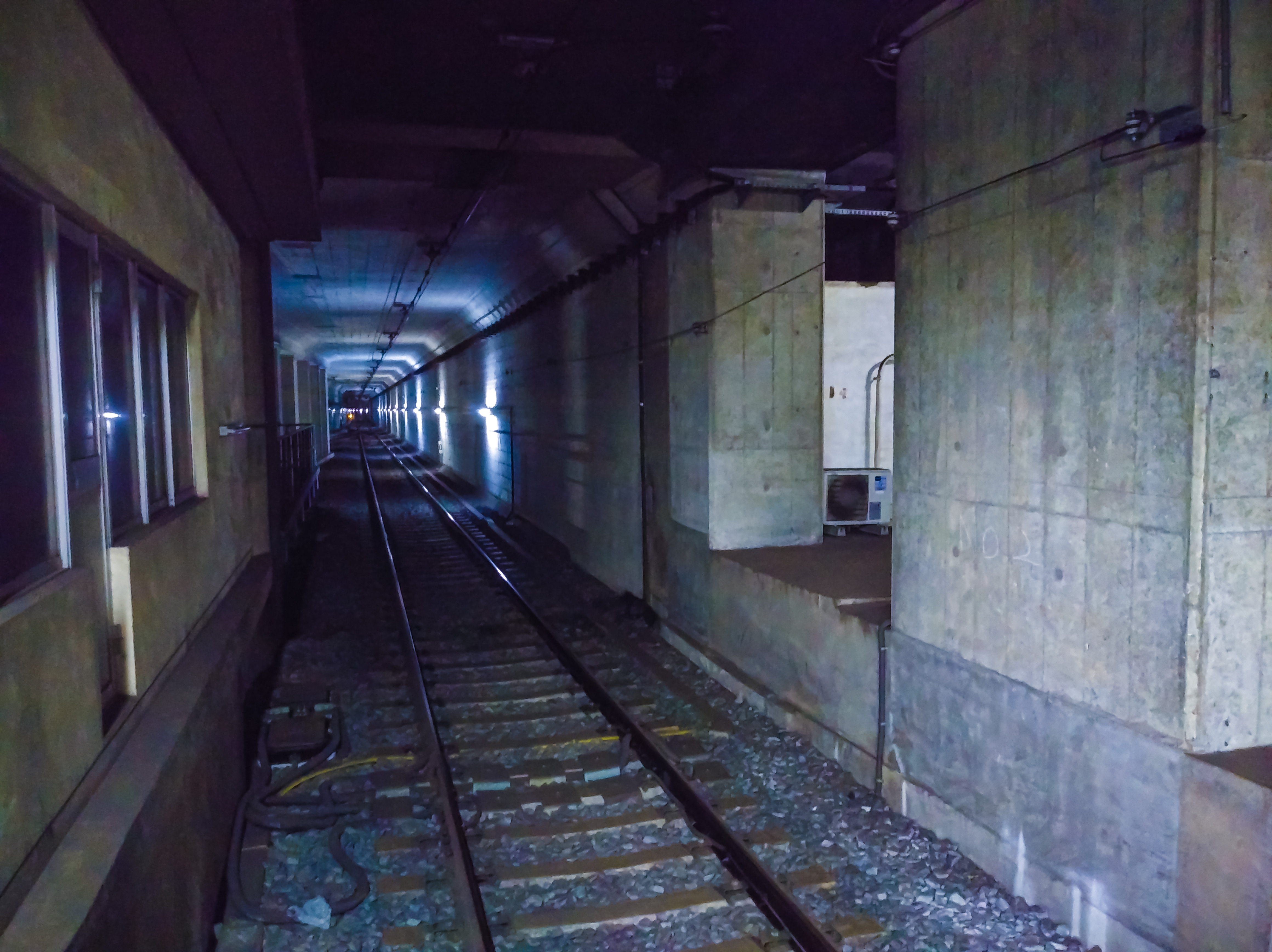写真をダウンロード逆方向はもうホームの端なのでトンネルゾーンな風景でございます……さながらワープトンネルって雰囲気はさっきまで歩いて来た通路とまあ似た風合いを醸してますやぁね(*´-`*)
