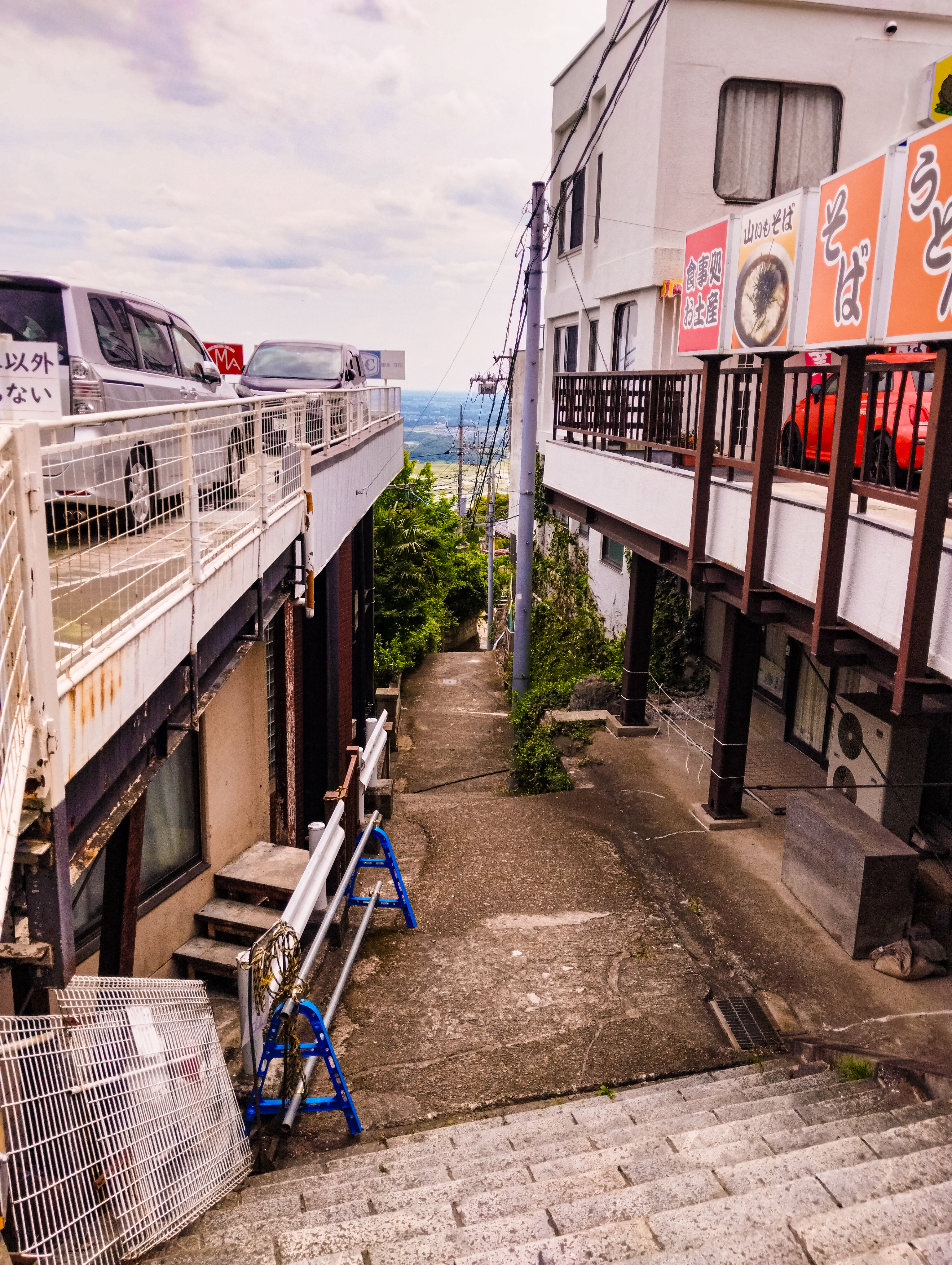 急勾配を下る道 - 筑波山神社(茨城県つくば市筑波1)