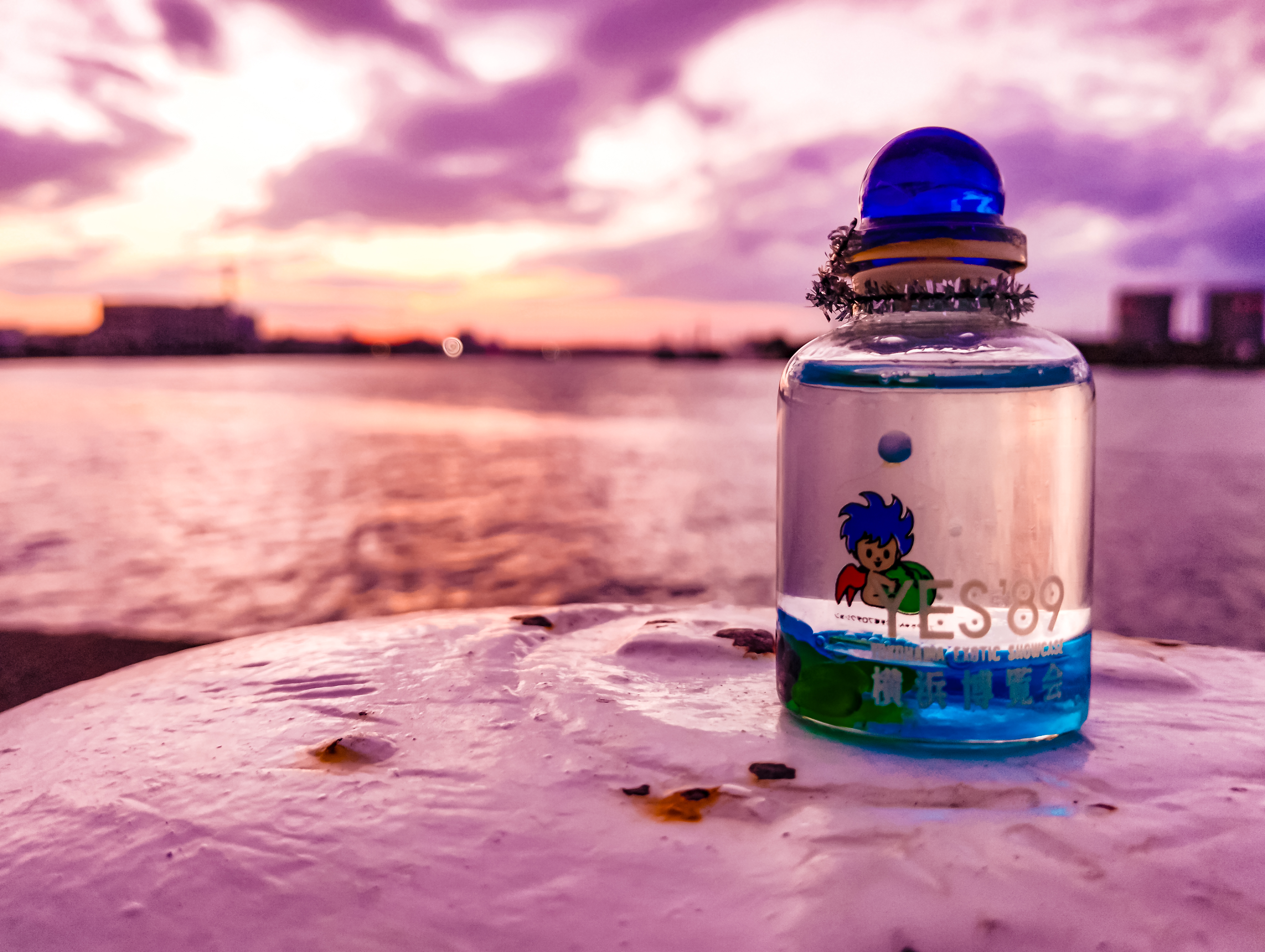 レトロオイルボトルと銚子の海 - 銚子漁港(千葉県銚子市竹町)