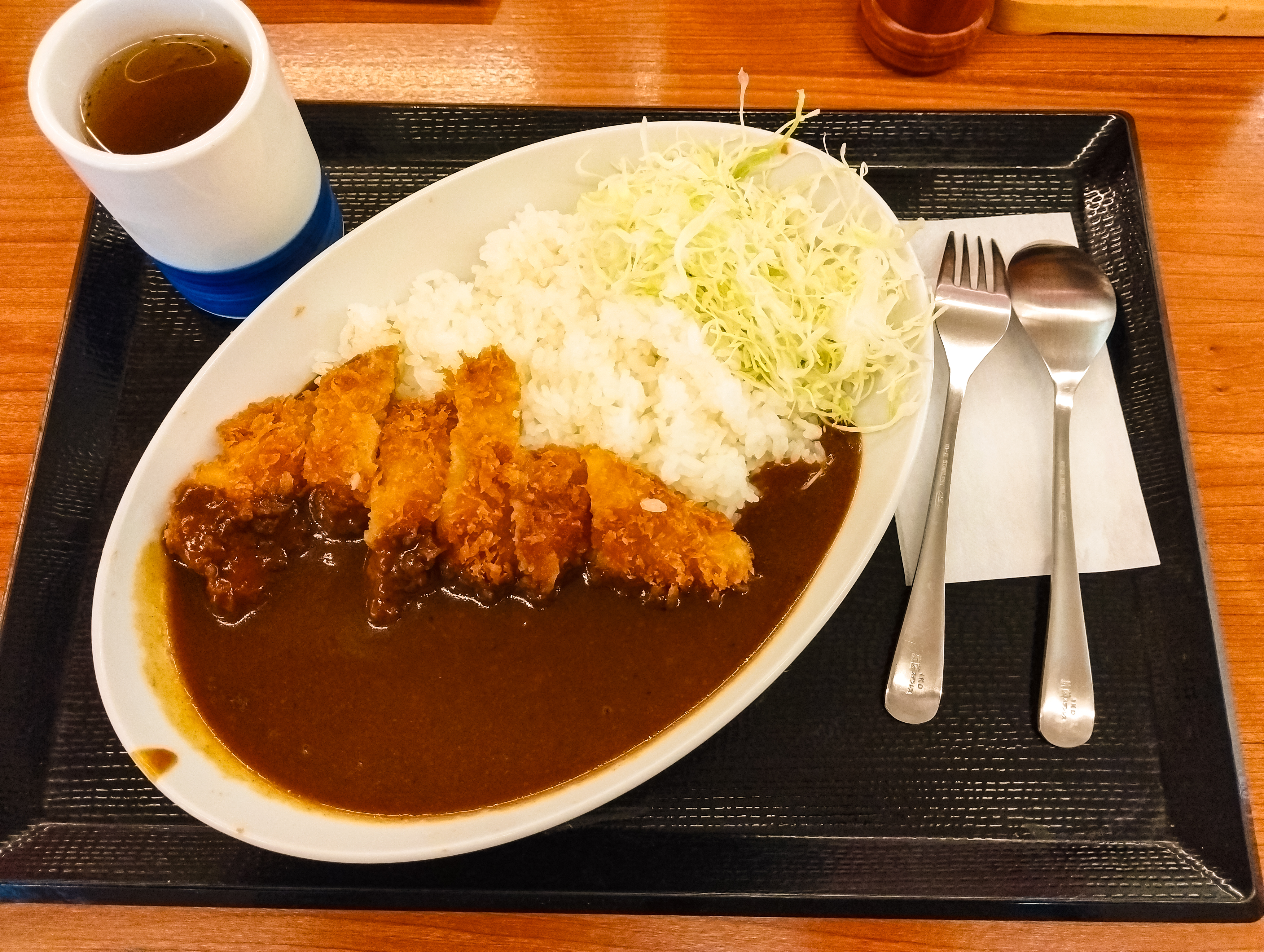 まぁーね、実わ他のナニガシもオール590円なんですけどここわもう一番お高いやーつでいくしかないですわい!……ってなわけで間髪入れずカツカレーチョイサー(^◇^)頼んますわい