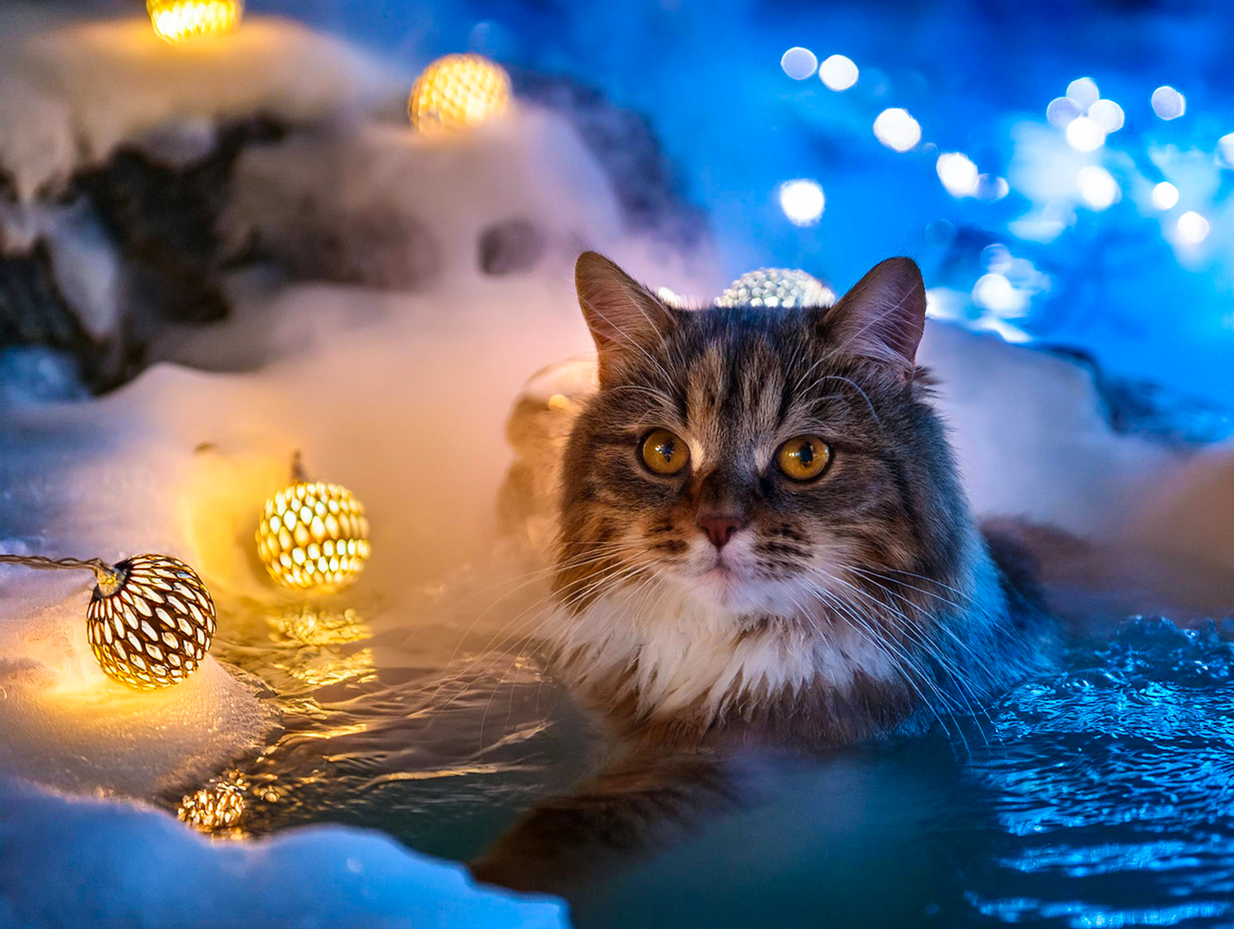 写真ACでダウンロード猫とイルミと雪見風呂……これって最高じゃないですか?という写真素材でございます( ˘ω˘ )