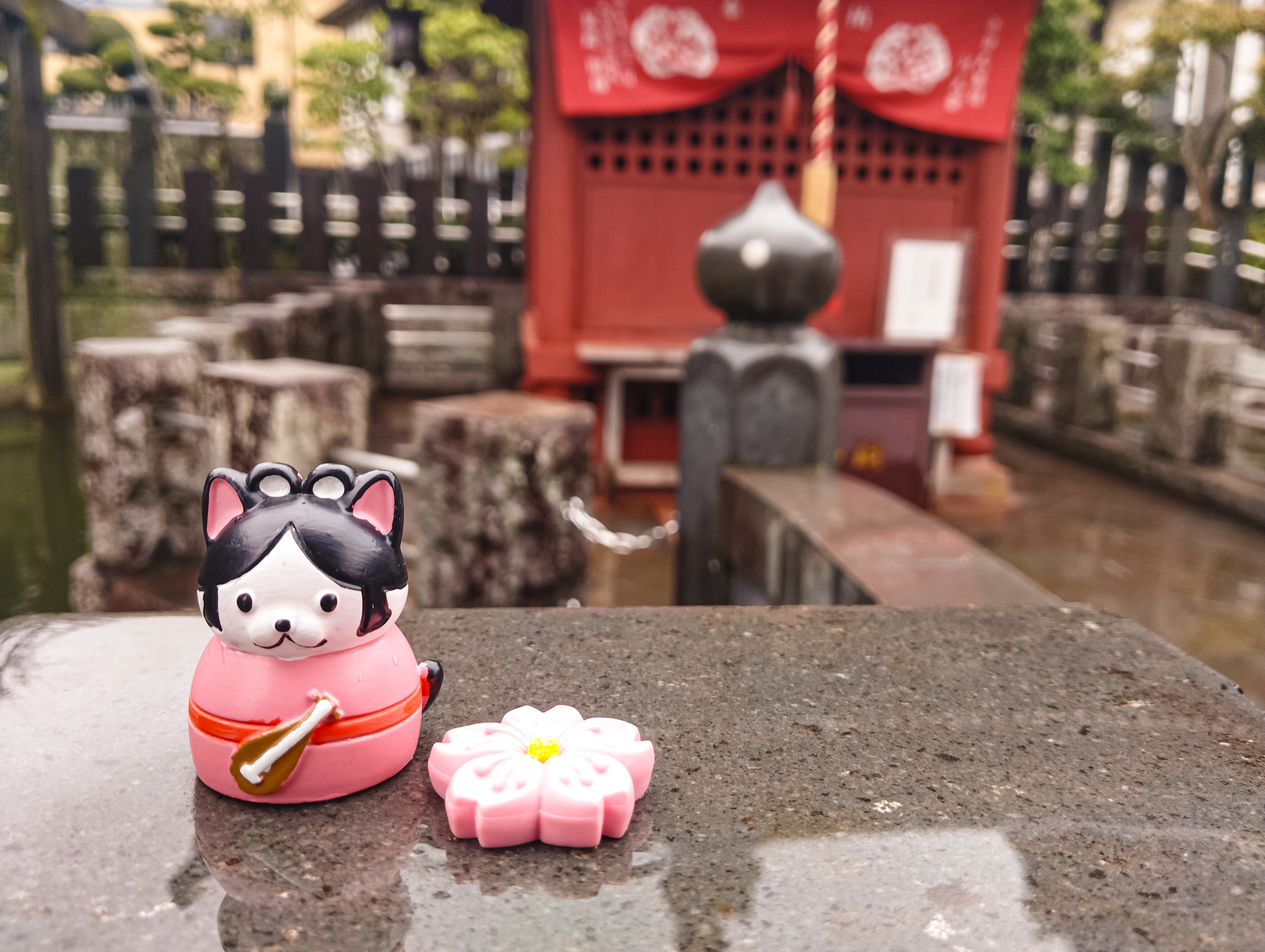 写真ACでダウンロードいつも金食に添えさせてもろてるセリアにて見つけた猫弁天と、そしてこの季節にぴったりなおもしろ消しゴムの満開桜……本日はこちらを添えてお堂風景をもう一枚( *´艸`)パワー戴きます