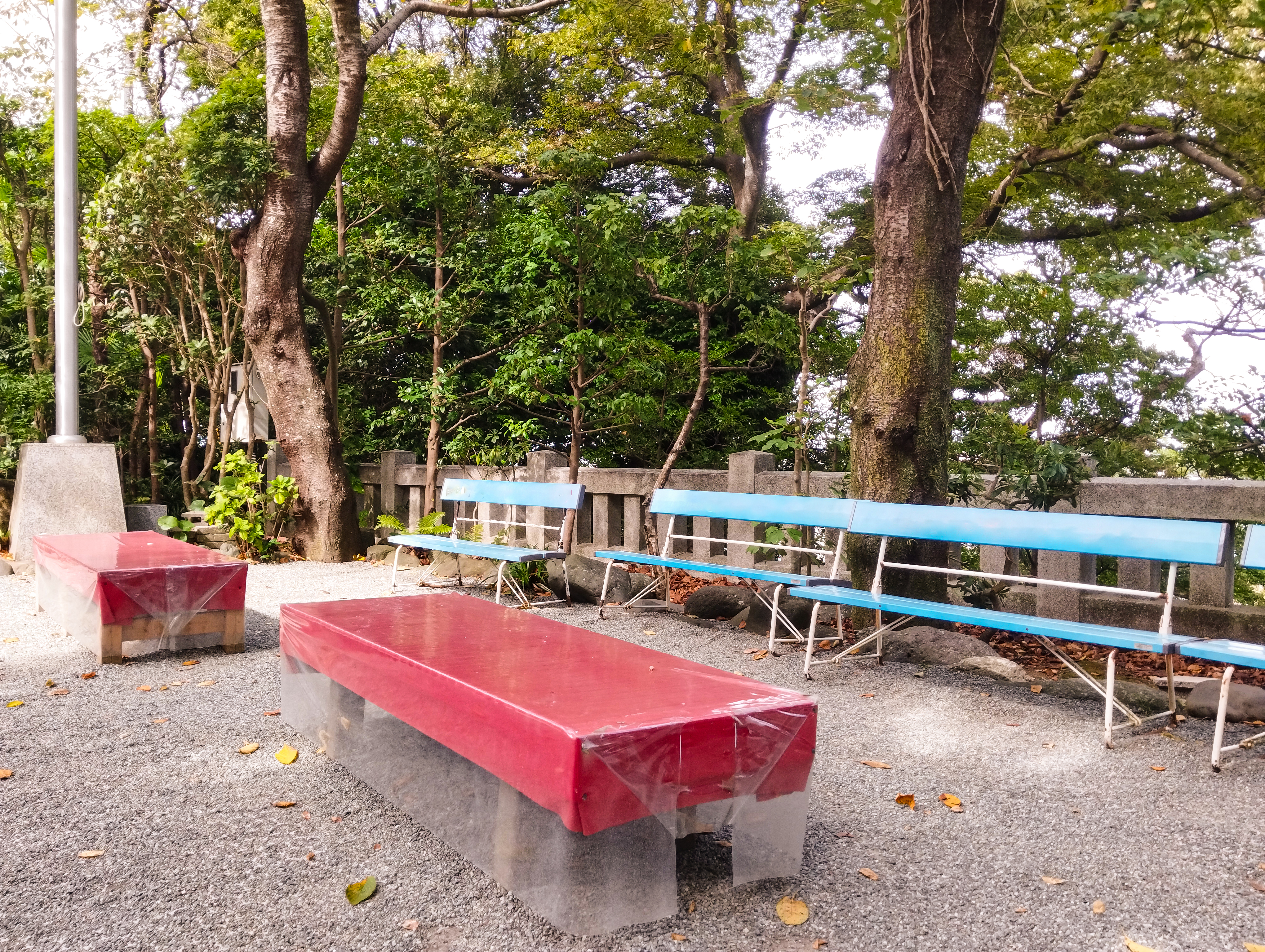 いやしかし何かもうこの境内も人がとにかくめっちゃくちゃ多くて疲れましたで、奥のベンチブースで一服休憩さしていただきやんしょってなもんで。こっちは静かで助かりマンモス……いやみんな若いのぅ( *´艸`)キャッキャウフフ