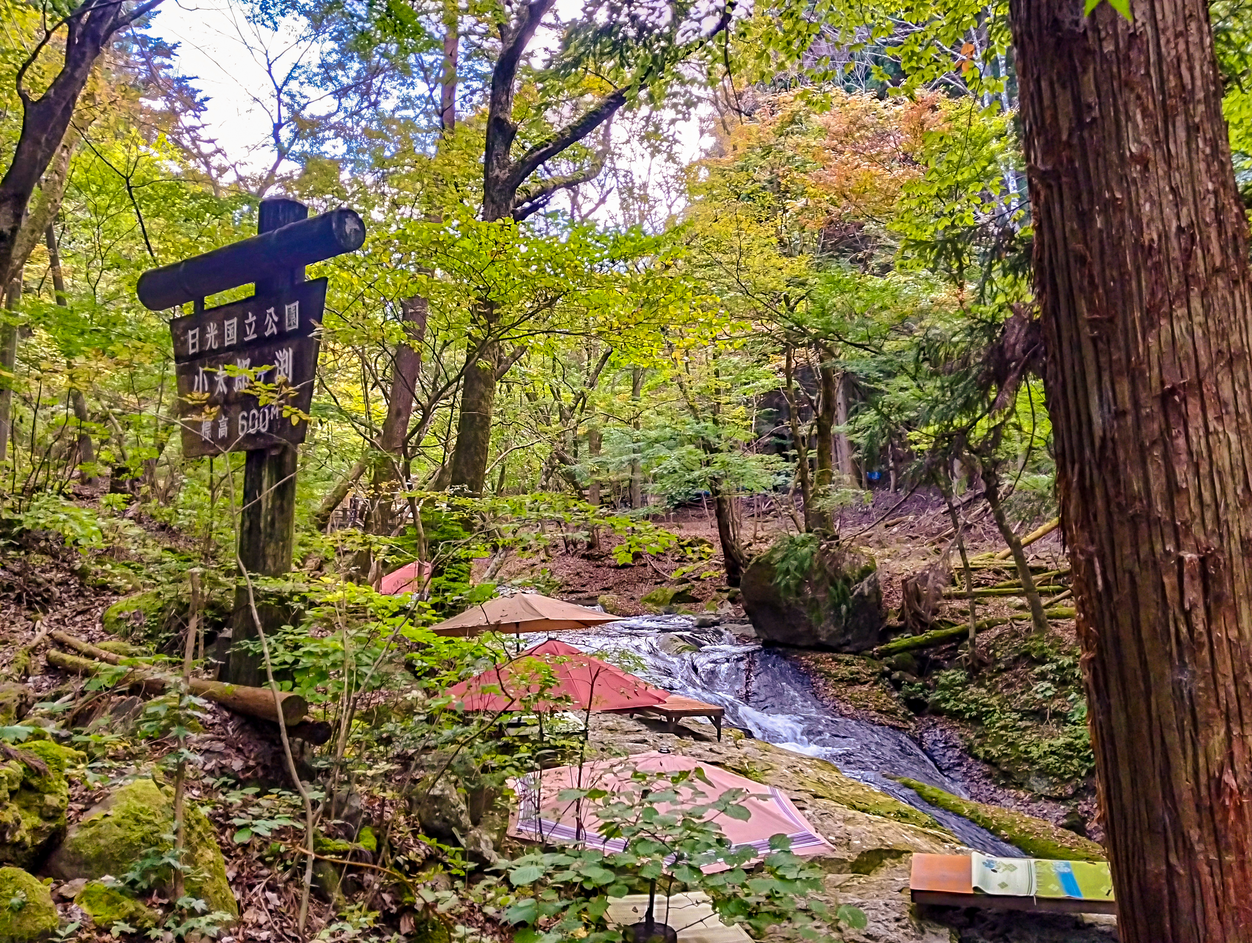 初日塩原紅葉の締めくくりに小太郎ヶ渕に来てみたんですが……ななんと本日休業の札が!?まさか川の水の流れが止まってるとか!?……いやいや単に小太郎茶屋がお休みってぇことだけみたいで(;^ω^ )そりゃそうだ