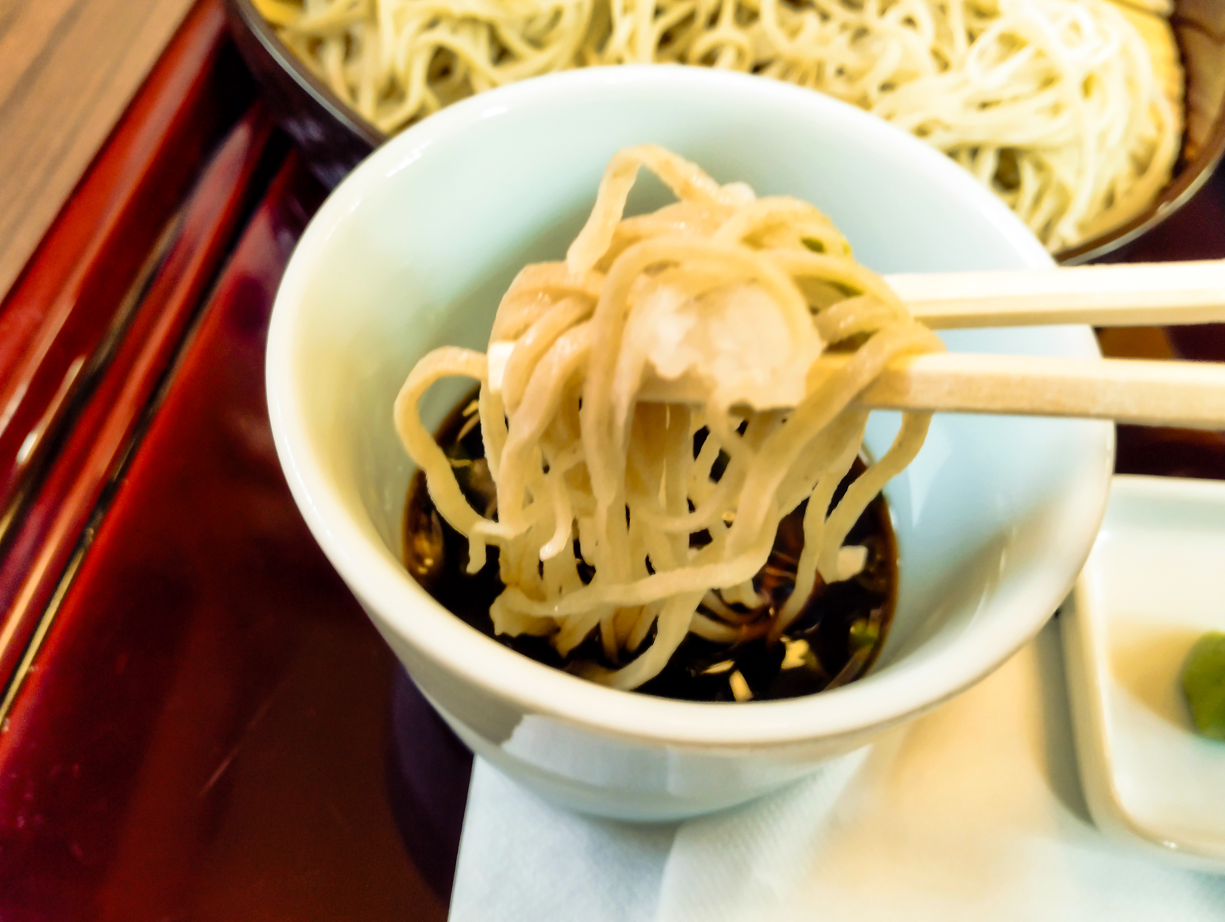 写真ACでダウンロードさてお蕎麦も戴きますぞ!わさびとおろしを添えて一口大に手繰りましてと( *´艸`)